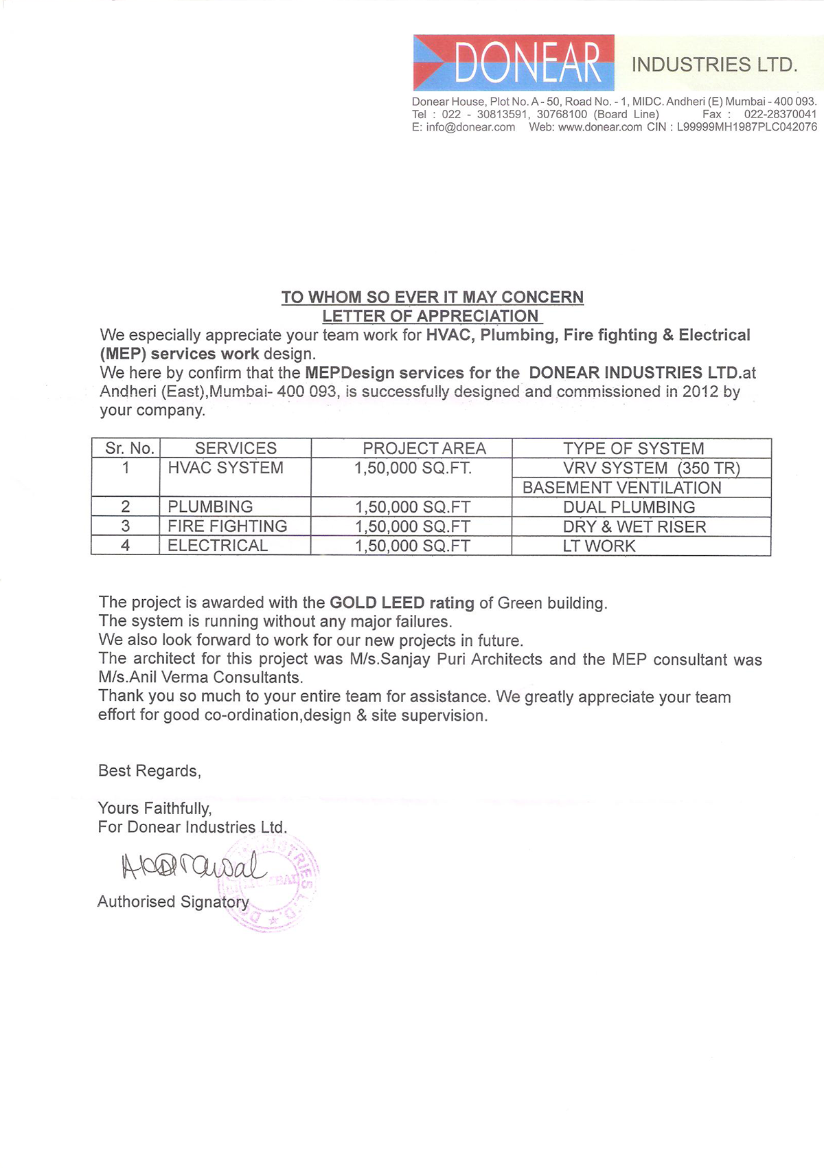 Mr. Anil Verma and his team has been a constant support for our ANA family for the past 15 years.